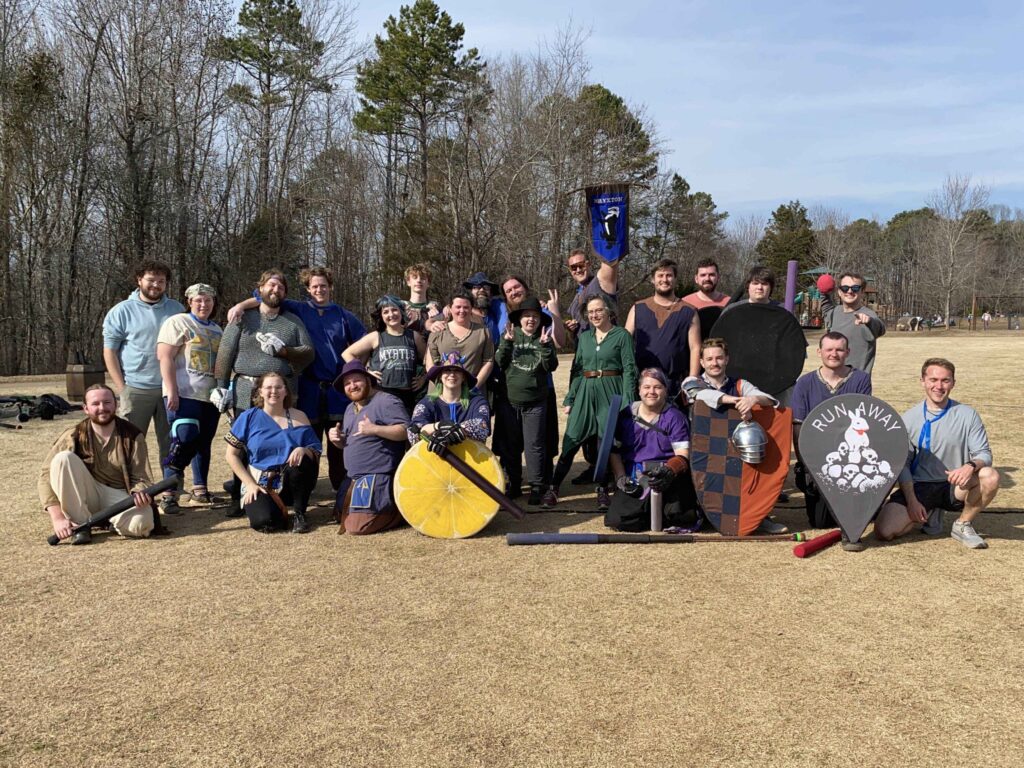 Foam swords, shields, bows and arrows mixed with 24 strangers in a public park.